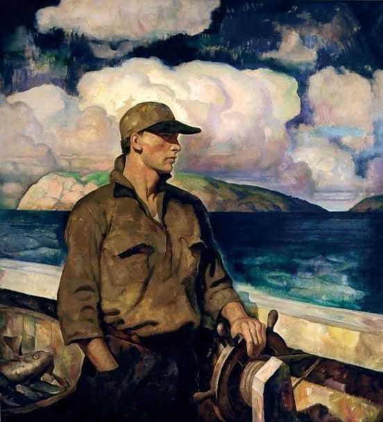 I have just about left all of my AI art behind. I have a few pictures I will still use, since they fit particularly well, but I think with the Homer and the N.C. Wyeth here, y9u can see how the classic art ads depth to my little story.