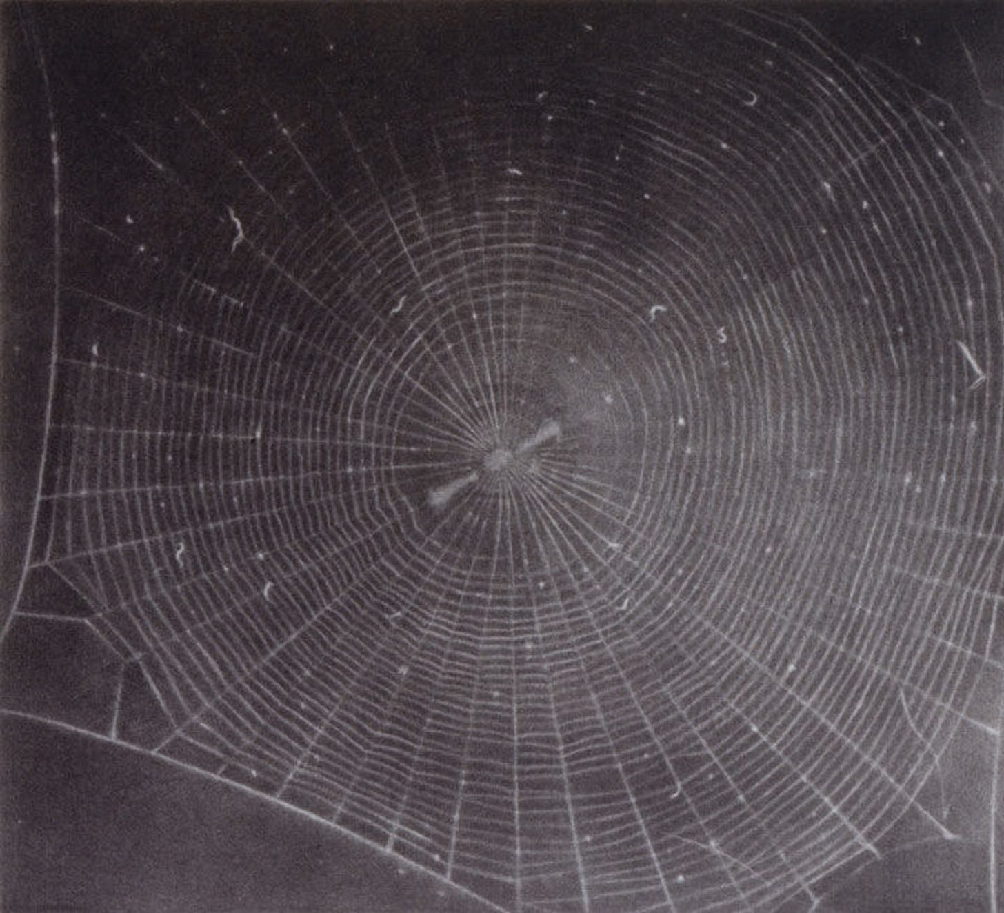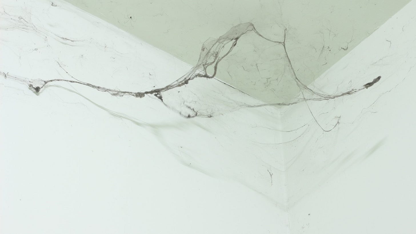 She could only see the work in the morning light, when the beams cut across the room and the shadows highlighted the filigree of the arachnids.