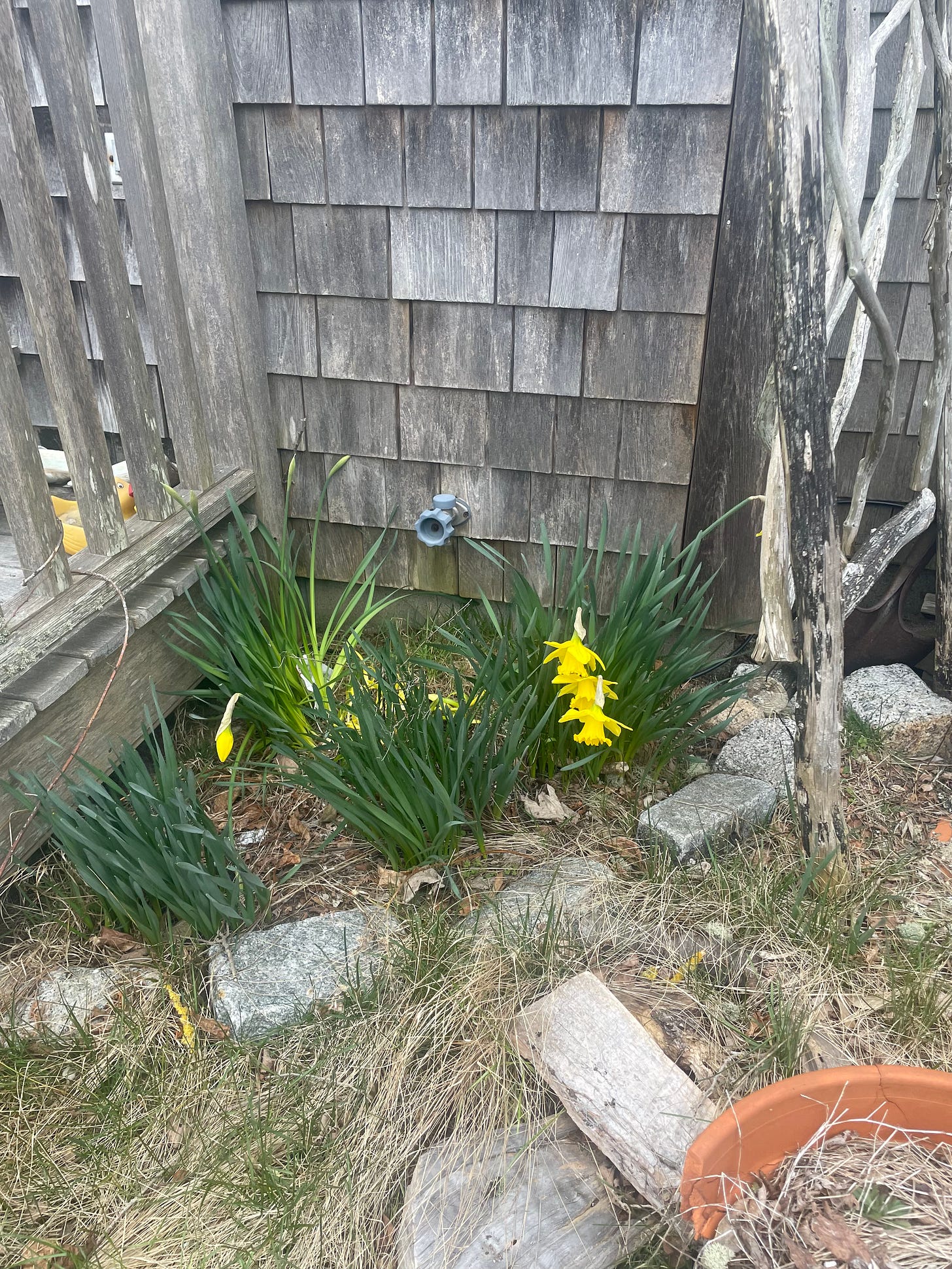 I have confidence that they will be here with the daffodils and the antique cars. Like Ariel, they will call the sailors to the shore. Already, the first seasonal residents have slipped back onto the island and are making plans to re-open the restaurants, inns, and shops of the summer. The help-wanted ads have doubled and tripled in the last few weeks as landscapers and innkeepers get ready for the summer onslaught. The Stop and Shop has more and more unfamiliar faces, both from Connecticut, Guatemala, and Jamaica. Their buzz is mostly unintelligible to this Anglo, but welcome nonetheless.